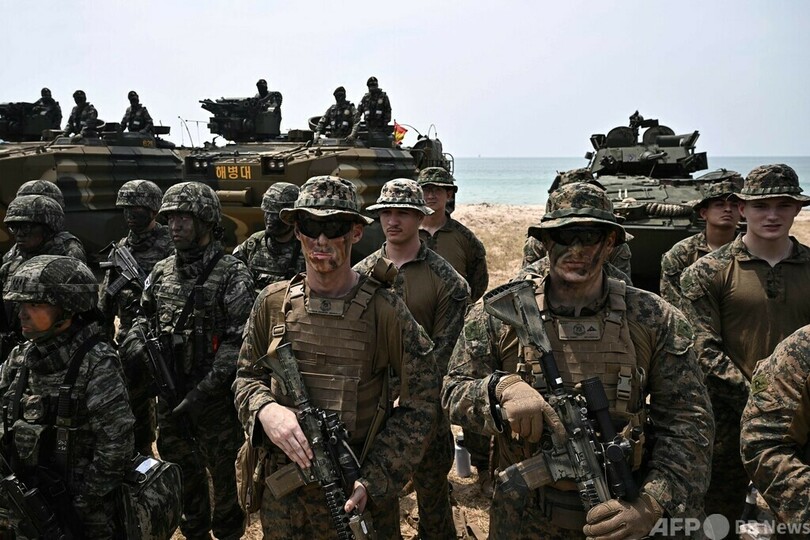 米軍はアジアで影響力拡大を図る中国に対抗するため、同盟諸国との軍事協力強化を図っており、今年は2022年の4倍以上となる約6000人を派遣している。(c)AFP