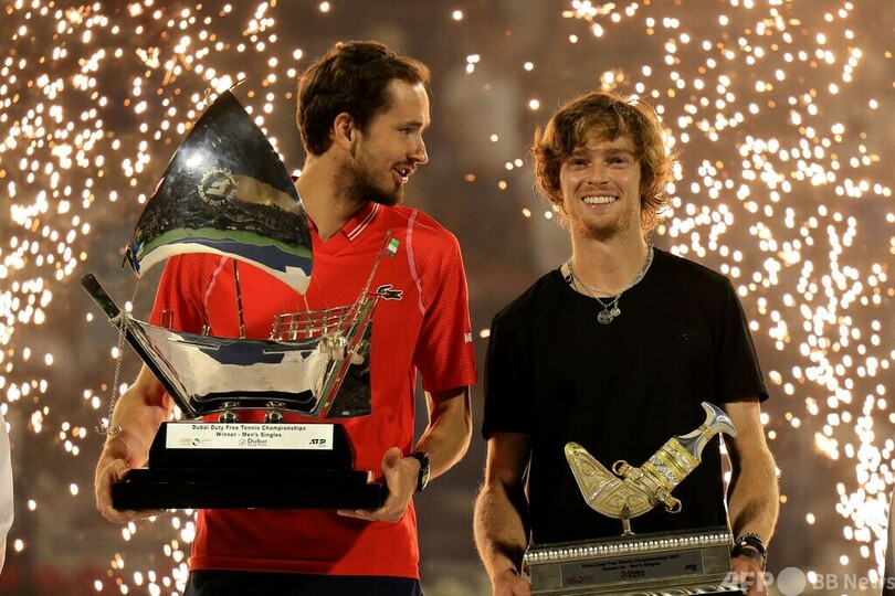 【3月5日 AFP】テニス、ドバイ・テニス選手権(Dubai Duty Free Tennis Championships 2023)は4日、男子シングルス決勝が行われ、大会第3シードのダニール・メドベージェフ(Daniil Medvedev)は6-2、6-2で第2シードのアンドレイ・ルブレフ(Andrey Rublev)を下し、自信を完全に取り戻す3週連続優勝を達成した。