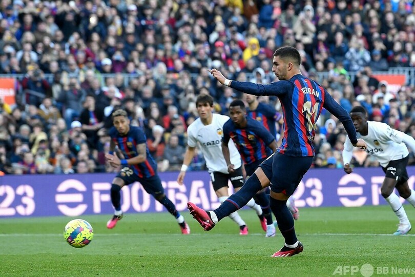 【3月6日 AFP】22-23スペイン1部リーグは5日、第24節の試合が行われ、首位FCバルセロナ(FC Barcelona)は10人になりながらも1-0でバレンシア(Valencia CF)を下し、この日引き分けた2位レアル・マドリード(Real Madrid)との勝ち点差を9に広げた。