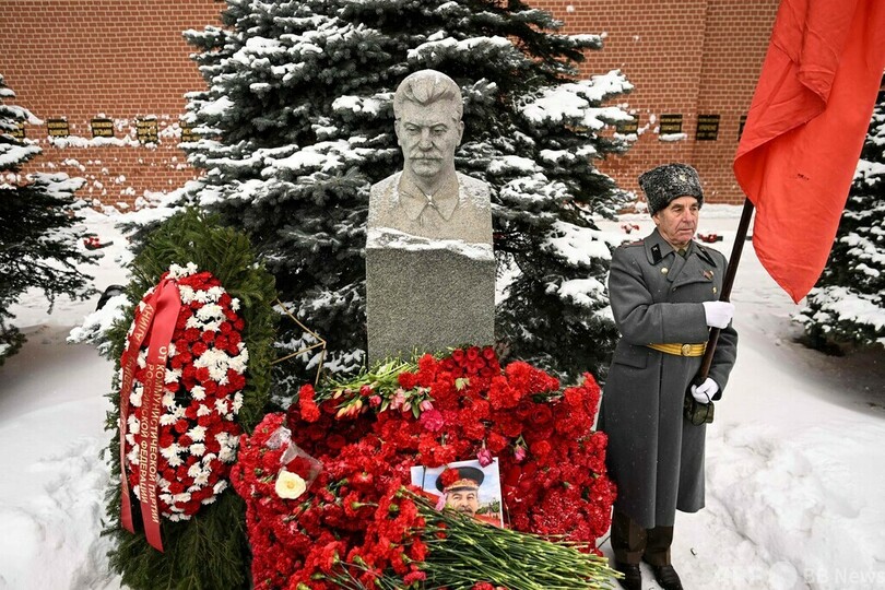 【3月6日 AFP】ロシアの首都モスクワ中心部の赤の広場(Red Square)で5日、旧ソ連の独裁者ヨシフ・スターリン(Joseph Stalin)の没後70年を記念する式典が行われ、ロシア共産党の支持者らが墓に花を手向けた。