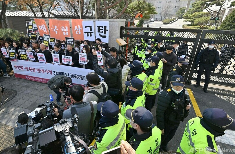 ニュース 政治・経済 元徴用工問題、政府の解決策発表に抗議 韓国 2023年3月6日 17:16 発信地:ソウル/韓国 [ 韓国 韓国・北朝鮮 日本 アジア・オセアニア ] このニュースをシェア ‹ › ❮ 6/6 ❯ 韓国・ソウルの外務省前で、元徴用工訴訟問題の解決策を正式発表した政府に抗議する市民(左、2022年3月6日撮影)。(c)Jung Yeon-je / AFP 画像作成中 ! 【3月6日 AFP】韓国政府が6日、元徴用工問題をめぐり、裁判所が日本企業に支払いを命じていた賠償を韓国の財団が肩代わりする解決策を発表したことを受け、ソウルの外務省前で同日、抗議デモが行われた。(c)AFP 政治・経済 一覧へ> メディア・報道関係・法人の方向け 写真・動画 購入のお問合せ>