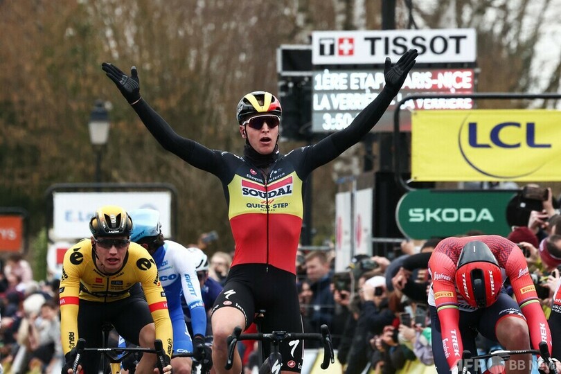 【3月6日 AFP】自転車ロードレース、パリ~ニース(Paris-Nice 2023)は5日、第1ステージ(ラベリエールからラベリエール、169.4キロ)が行われ、スーダル・クイックステップ(Soudal Quick-Step)のスプリンター、ティム・メルリエ(Tim Merlier、ベルギー)が開幕ステージを制した。