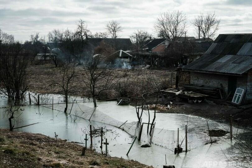【3月19日 AFP】ウクライナ軍は1年前、首都キーウ制圧を目指し進軍するロシアを阻むため、キーウの北約35キロに位置するデミディウ(Demydiv)村の近くにあるダムを破壊した。村は水浸しになった。イワン・ククルザさん(69)の自宅の地下室は今でも水が引かず、忍耐も限界に近付いている。