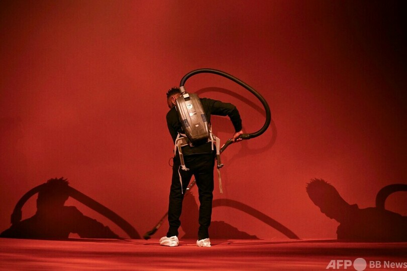 【3月14日 AFP】パリ・ファッションウィーク(Paris Fashion Week)でエルメス(Hermes)の23年秋冬コレクションのショーを前にランウエーを掃除する男性。仏パリで。(c)AFP