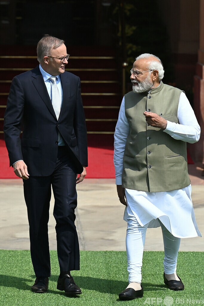 【3月12日 AFP】インドのナレンドラ・モディ(Narendra Modi)首相と同国訪問中のオーストラリアのアンソニー・アルバニージー(Anthony Albanese)首相は10日、ニューデリーで会談後に記者会見し、安全保障分野での連携を強化する考えを表明した。