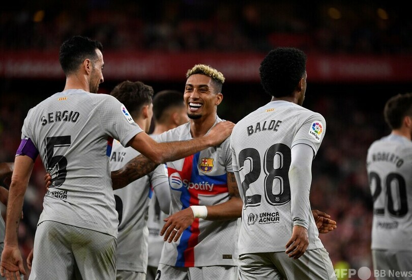 【3月13日 AFP】22-23スペイン1部リーグは12日、第25節の試合が行われ、首位FCバルセロナ(FC Barcelona)はラフィーニャ(Raphinha)のゴールでアスレティック・ビルバオ(Athletic Bilbao)に1-0で競り勝ち、2位レアル・マドリード(Real Madrid)との勝ち点9差を保った。