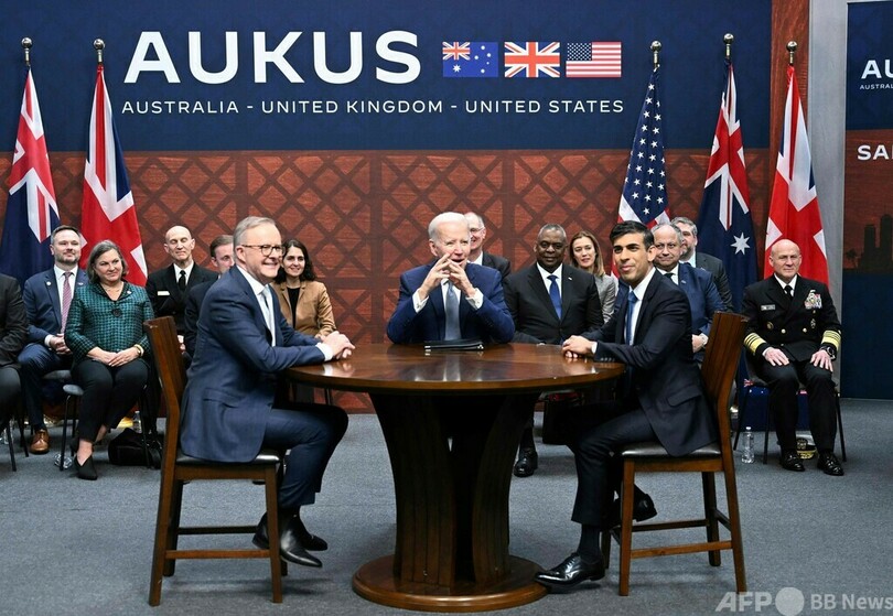 【3月14日 AFP】米国と英国、オーストラリアの首脳は13日、米サンディエゴ(San Diego)で会談し、3か国の安全保障枠組み「AUKUS(オーカス)」を通じて豪州が米原子力潜水艦を導入する計画で合意したと発表した。これを受けて中国は、3か国が「誤った危険な道」に歩を進めていると警告した。