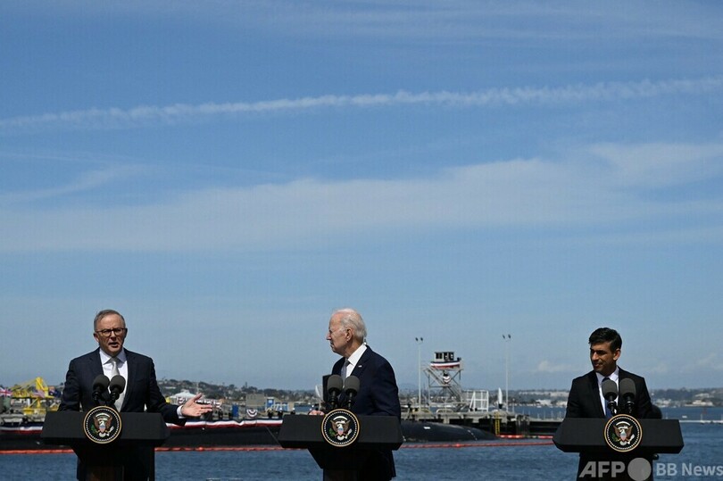 【3月14日 AFP】米国と英国、オーストラリアの首脳は13日、米サンディエゴ(San Diego)で会談し、3か国の安全保障枠組み「AUKUS(オーカス)」を通じて豪州が米原子力潜水艦を導入する計画で合意したと発表した。これを受けて中国は、3か国が「誤った危険な道」に歩を進めていると警告した。