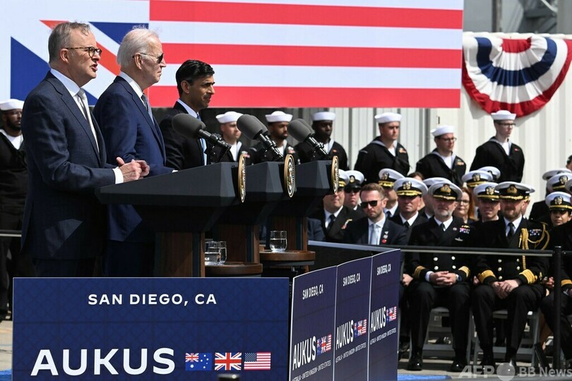【3月14日 AFP】米国と英国、オーストラリアの首脳は13日、米サンディエゴ(San Diego)で会談し、3か国の安全保障枠組み「AUKUS(オーカス)」を通じて豪州が米原子力潜水艦を導入する計画で合意したと発表した。これを受けて中国は、3か国が「誤った危険な道」に歩を進めていると警告した。