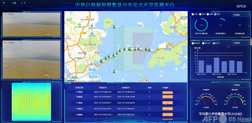中国科学院水生生物研究所の研究員によれば、長江スナメリとシナウスイロイルカは1日の95%以上の時間を水中で過ごすため、従来の人による目視や音響による観察では長時間、また広範囲に及ぶ観測データの収集が困難でした。今回開発されたプラットフォームはソナーによる識別や画像のキャプチャーなどの技術を活かし、24時間途切れることなくモニタリングと早期警戒が可能になります。モニタリングの範囲は中国の内陸河川と近海をカバーし、長江スナメリとシナウスイロイルカが発する超音波をソナーによってリアルタイムで識別し、その個体数と正確な位置を計算する他、動物が泳ぎ回ったり餌を取ったりする行動を識別できます。さらに、動物が水面で活動している様子をリアルタイムで撮影し、船舶が水中に放射する雑音をモニタリングして事前警報を発する機能も備えているということです。(c)CGTN Japanese/AFPBB News