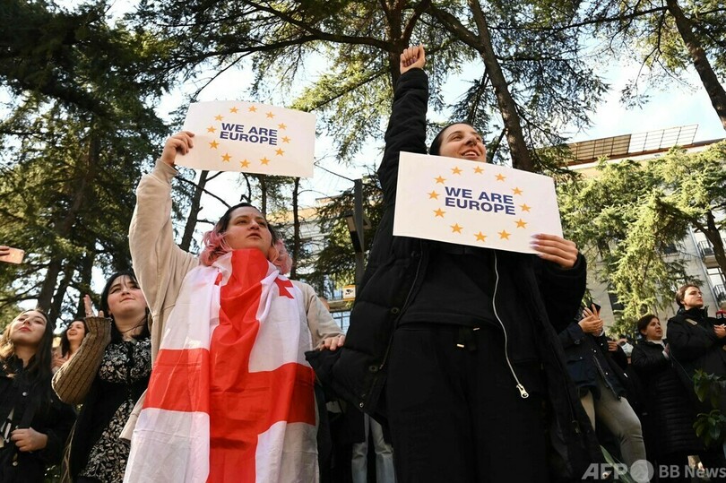 こうした動きを受けて与党「ジョージアの夢」は10日、法案を正式に取り下げた。デモ隊は議会の外で歓声を上げ、「We are Europe(私たちは欧州)」と書かれたプラカードを掲げた。