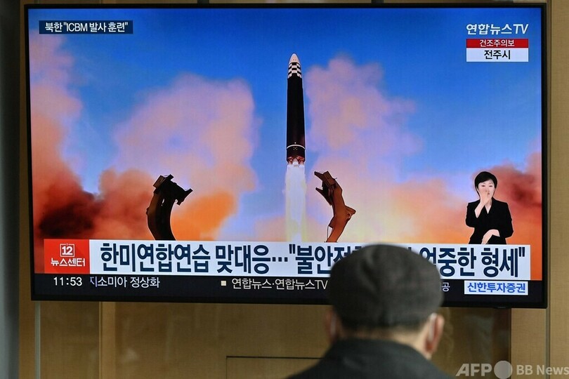 北朝鮮は16日にも、今年2回目となる大陸間弾道ミサイル(ICBM)「火星17(Hwasong 17)」を発射したばかり。同国国営メディアはICBM発射について、米韓両国による「狂った」軍事演習へ対応だとしている。(c)AFP