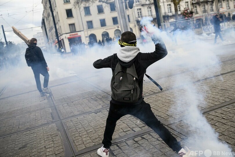 【3月19日 AFP】フランス各地で18日、エマニュエル・マクロン(Emmanuel Macron)政権が受給開始年齢引き上げを柱とする年金改革法案を強行採択したのを受け、抗議デモが行われた。
