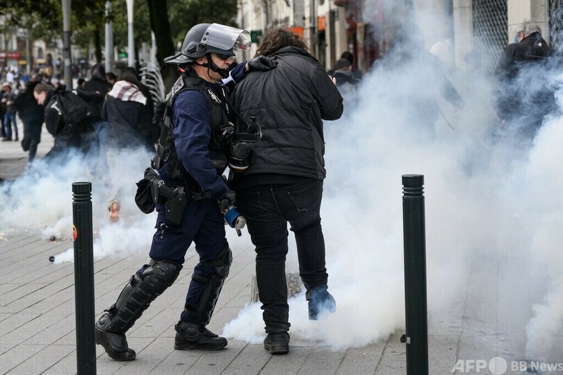 【3月19日 AFP】フランス各地で18日、エマニュエル・マクロン(Emmanuel Macron)政権が受給開始年齢引き上げを柱とする年金改革法案を強行採択したのを受け、抗議デモが行われた。