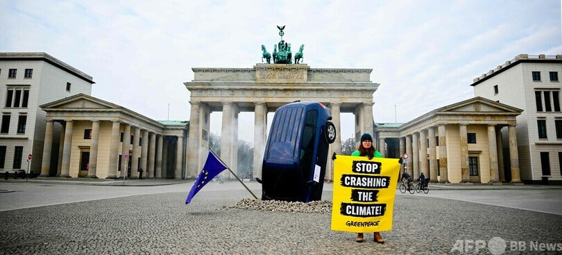 【3月22日 AFP】国際環境NGOグリーンピース(Greenpeace)は22日、ドイツの首都ベルリン中心部のブランデンブルク門(Brandenburg Gate)で、政府の気候変動対策への抗議活動を実施した。