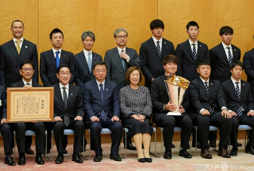 【3月24日 AFP】第5回ワールド・ベースボール・クラシック(WBC)を制した日本代表のメンバーが23日の帰国後、都内の首相官邸を訪問し、岸田文雄(Fumio Kishida)首相と面会した。
