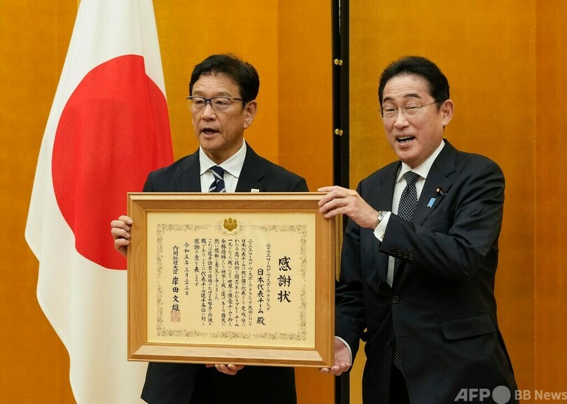 【3月24日 AFP】第5回ワールド・ベースボール・クラシック(WBC)を制した日本代表のメンバーが23日の帰国後、都内の首相官邸を訪問し、岸田文雄(Fumio Kishida)首相と面会した。
