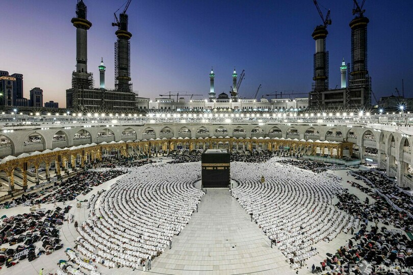 同日にはイスラム教の聖地メッカ(Mecca)の聖モスク(Grand Mosque)中心にある黒布で覆われた直方体のカーバ(Kaaba)神殿の周りを掃除する様子が見られた。