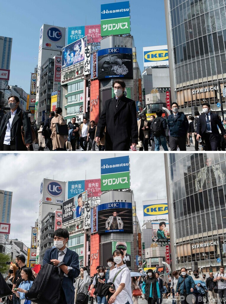 【3月25日 AFP】新型コロナウイルス対策のマスク着用ルールについて、日本政府の方針が13日に改定され、マスク着用は屋内・屋外を問わず「個人の判断」に委ねられた。着用が推奨されるのは、通勤ラッシュ時など混雑した電車やバスに乗車する時や、重症化リスクの高い人が多数入院・生活している医療機関や高齢者施設などを訪れる時のみとなっている。