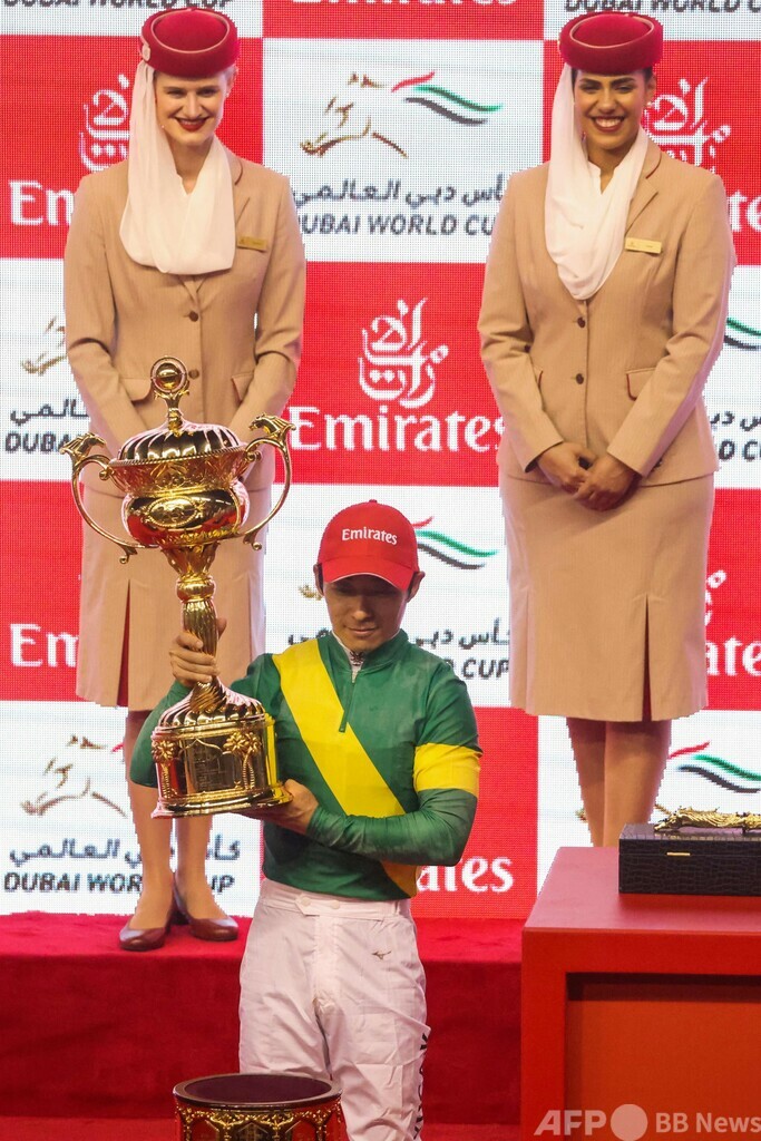 【3月26日 AFP】競馬のドバイ国際競走が25日、アラブ首長国連邦(UAE)・ドバイ(Dubai)のメイダン競馬場(Meydan racecourse)で開催され、川田将雅(Yuga Kawada)騎手騎乗のウシュバテソーロ(Ushba Tesoro)がメインレースのドバイ・ワールドカップ(Dubai World Cup 2023、ダート2000メートル)を制し、国外初レースで快勝を収めた。