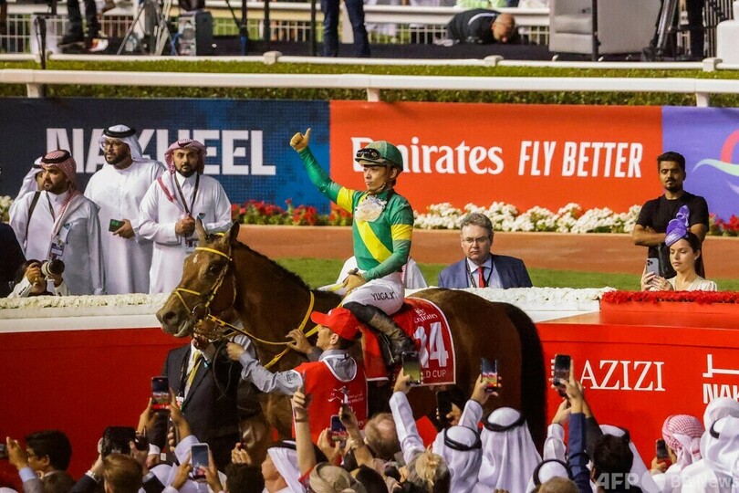 【3月26日 AFP】競馬のドバイ国際競走が25日、アラブ首長国連邦(UAE)・ドバイ(Dubai)のメイダン競馬場(Meydan racecourse)で開催され、川田将雅(Yuga Kawada)騎手騎乗のウシュバテソーロ(Ushba Tesoro)がメインレースのドバイ・ワールドカップ(Dubai World Cup 2023、ダート2000メートル)を制し、国外初レースで快勝を収めた。