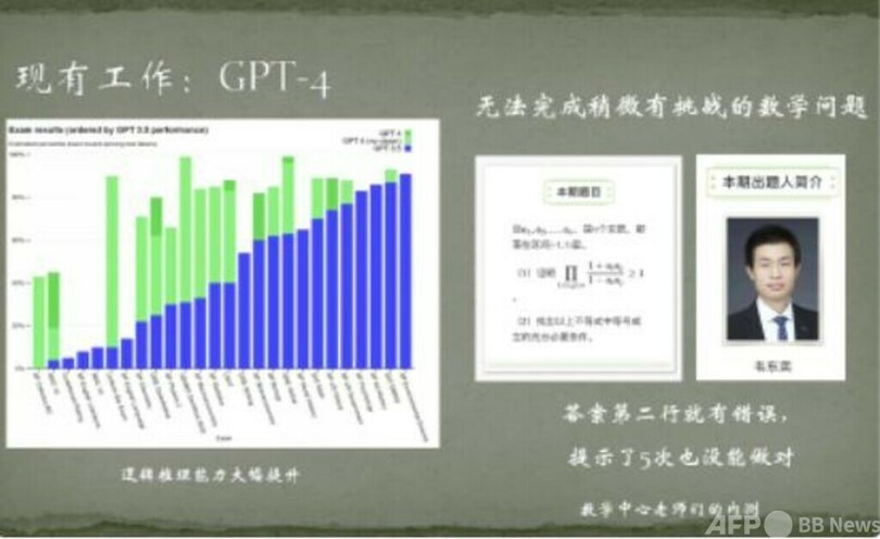 なお、今回の数学問題については、北京国際数学研究センターの教師らが話題のChatGPTを使って解いてみたところ、「その解答は2行目から間違っており、5回間違いを指摘しても正しい解答へ導くことはできなかった」との結果になったということです。(c)CGTN Japanese/AFPBB News