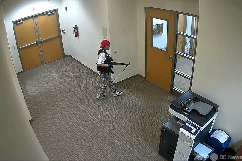 ナッシュビル警察は、校内の防犯カメラが捉えた容疑者の映像を公開。ライフル2丁と拳銃1丁で武装した容疑者が、校舎入り口のガラス戸を銃で撃って破り、ライフルを構え校内を徘徊(はいかい)する様子が写っている。