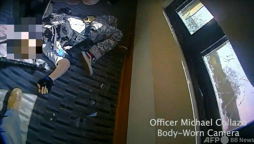 ナッシュビル警察は、校内の防犯カメラが捉えた容疑者の映像を公開。ライフル2丁と拳銃1丁で武装した容疑者が、校舎入り口のガラス戸を銃で撃って破り、ライフルを構え校内を徘徊(はいかい)する様子が写っている。