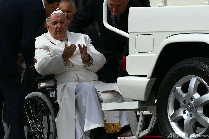 教皇は29日、バチカン市国で毎週恒例の一般謁見(えっけん)に臨んだ際は元気な様子で、専用車「パパモビル(Popemobile)」の中から参列者に笑顔を見せていた。ただパパモビルに乗り込む際には、側近の手を借りながら、顔をしかめる場面もあった。