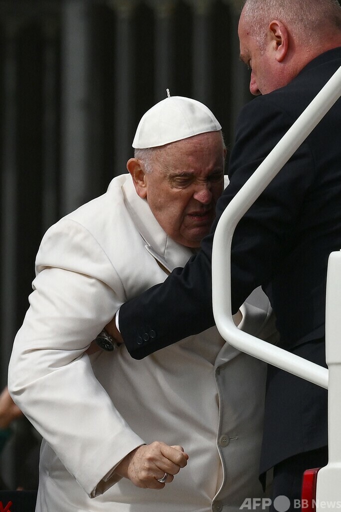 教皇は29日、バチカン市国で毎週恒例の一般謁見(えっけん)に臨んだ際は元気な様子で、専用車「パパモビル(Popemobile)」の中から参列者に笑顔を見せていた。ただパパモビルに乗り込む際には、側近の手を借りながら、顔をしかめる場面もあった。