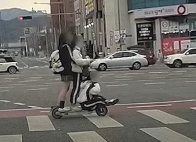 電動キックボード、1台に韓国の女子生徒3人…奇想天外な使用法に大人はヒヤヒヤ