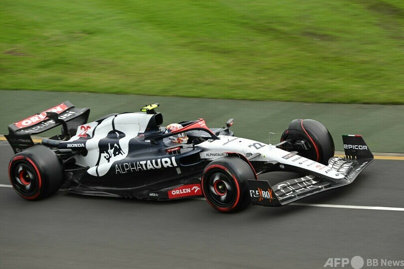 アルファタウリ(AlphaTauri)の角田裕毅(Yuki Tsunoda)はQ2敗退で12番手となった。(c)AFP