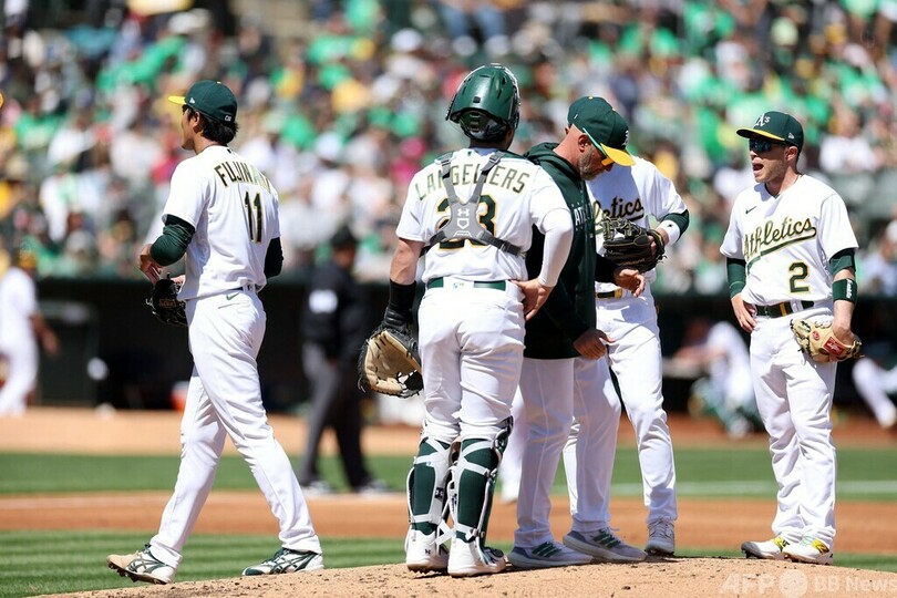 【4月2日 AFPBB News】米大リーグ(MLB)は1日、各地で試合が行われ、オークランド・アスレチックス(Oakland Athletics)の藤浪晋太郎(Shintaro Fujinami)は、ロサンゼルス・エンゼルス(Los Angeles Angels)戦でMLBデビューとなる先発登板を果たしたものの、2回3分の1を投げて8失点で降板した。
