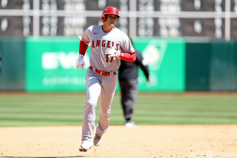 【4月3日 AFPBB News】米大リーグ(MLB)は2日、各地で試合が行われ、ロサンゼルス・エンゼルス(Los Angeles Angels)の大谷翔平(Shohei Ohtani)はオークランド・アスレチックス(Oakland Athletics)戦に3番・指名打者(DH)で先発出場し、5回に推定飛距離136メートルの今季第1号本塁打を放った。この日は4打数1安打1打点だった。