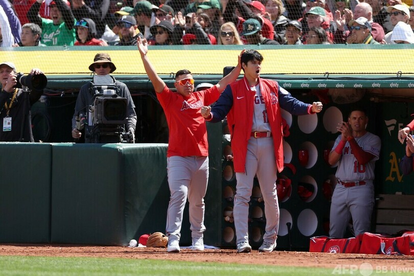 【4月3日 AFPBB News】米大リーグ(MLB)は2日、各地で試合が行われ、ロサンゼルス・エンゼルス(Los Angeles Angels)の大谷翔平(Shohei Ohtani)はオークランド・アスレチックス(Oakland Athletics)戦に3番・指名打者(DH)で先発出場し、5回に推定飛距離136メートルの今季第1号本塁打を放った。この日は4打数1安打1打点だった。