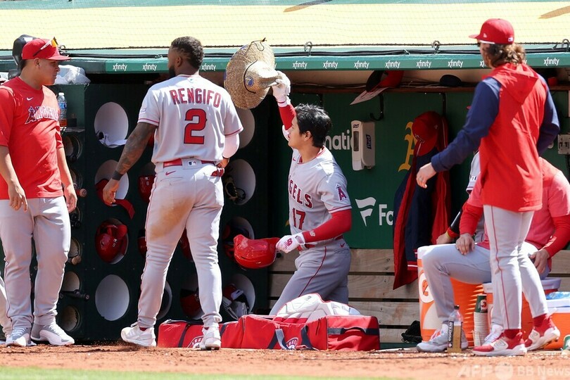 【4月3日 AFPBB News】米大リーグ(MLB)は2日、各地で試合が行われ、ロサンゼルス・エンゼルス(Los Angeles Angels)の大谷翔平(Shohei Ohtani)はオークランド・アスレチックス(Oakland Athletics)戦に3番・指名打者(DH)で先発出場し、5回に推定飛距離136メートルの今季第1号本塁打を放った。この日は4打数1安打1打点だった。