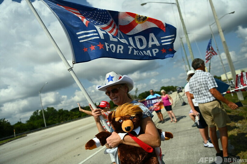 トランプ氏を乗せた車列はこの日、フロリダ州の邸宅を出発。空港までの道路沿いには数十人の支持者が集まり、トランプ氏を見送った。空港に到着した同氏は、自身が所有するプライベートジェットに乗り込む際、報道陣に手を振った。(c)AFP