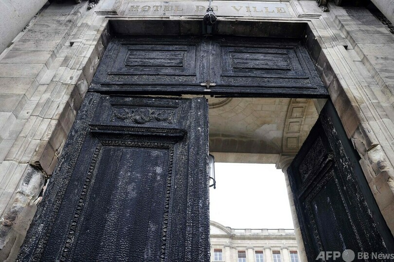 デモで燃えた庁舎扉、住民投票で対応決定へ 仏ボルドー市長