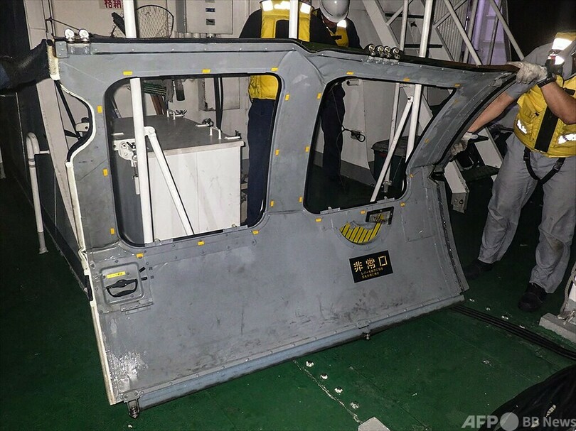 公開されたのはドア1枚と回転翼の一部、折りたたまれた状態の救命用ボートの写真。