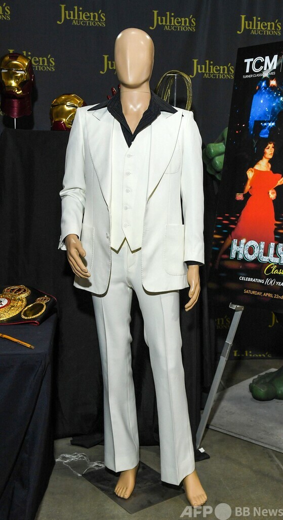 【4月7日 AFP】1977年の米映画『サタデー・ナイト・フィーバー(Saturday Night Fever)』でジョン・トラボルタ(John Travolta)が着用した白いスーツが今月、競売に掛けられる。