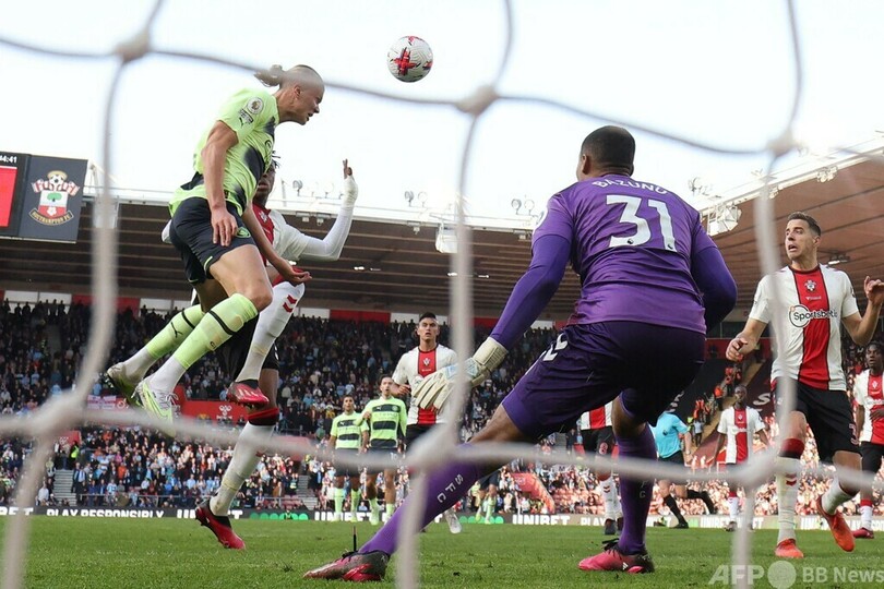 【4月9日 AFP】22-23イングランド・プレミアリーグは8日、第30節の試合が行われ、マンチェスター・シティ(Manchester City)はアーリング・ブラウト・ハーランド(Erling Braut Haaland)の2得点などでサウサンプトン(Southampton FC)を4-1で下し、首位アーセナル(Arsenal)との勝ち点差を縮めた。