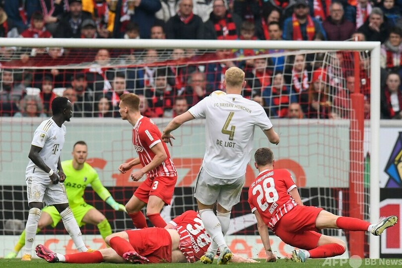 【4月9日 AFP】22-23ドイツ・ブンデスリーガ1部は8日、第27節の試合が行われ、首位バイエルン・ミュンヘン(Bayern Munich)は1-0でSCフライブルク(SC Freiburg)を下し、同日勝利した2位ボルシア・ドルトムント(Borussia Dortmund)との勝ち点2差を維持した。