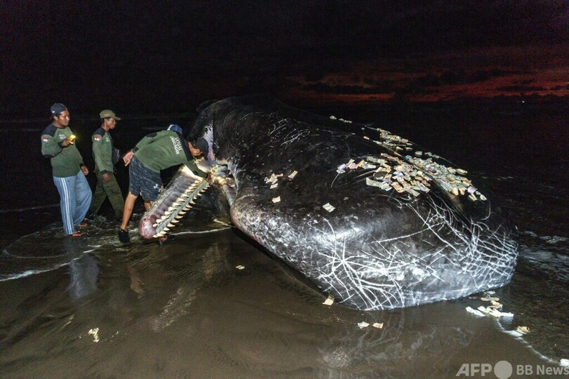 マッコウクジラは体長17メートルの雄で、8日午後にジュンブラナ(Jembrana)県のビーチに打ち上げられているのが見つかった。海洋水産当局関係者はAFPに対し、死骸は病理解剖を行った上で埋めると説明。先に見つかったクジラと同様、病死したものとみられると語った。