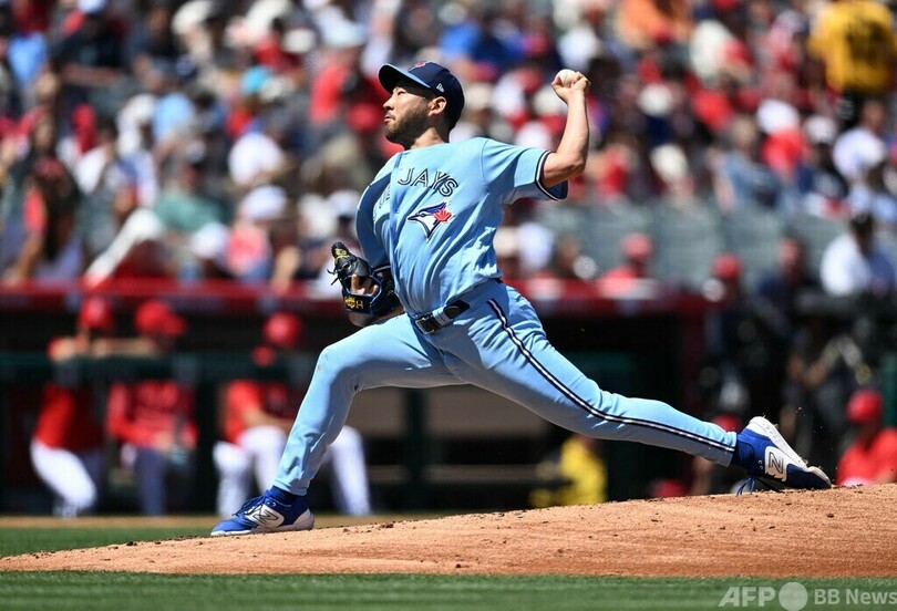 ブルージェイズの先発・菊池は、4回3分の1を投げて3本塁打を含む9安打6失点、6奪三振で、勝敗はつかなかった。試合はブルージェイズが延長戦の末に12-11で逆転勝ちを収めた。(c)AFPBB News