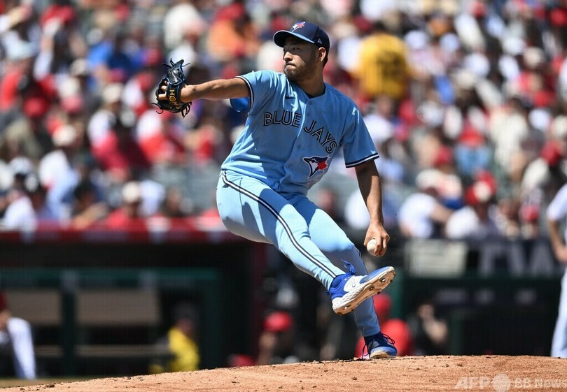 ブルージェイズの先発・菊池は、4回3分の1を投げて3本塁打を含む9安打6失点、6奪三振で、勝敗はつかなかった。試合はブルージェイズが延長戦の末に12-11で逆転勝ちを収めた。(c)AFPBB News