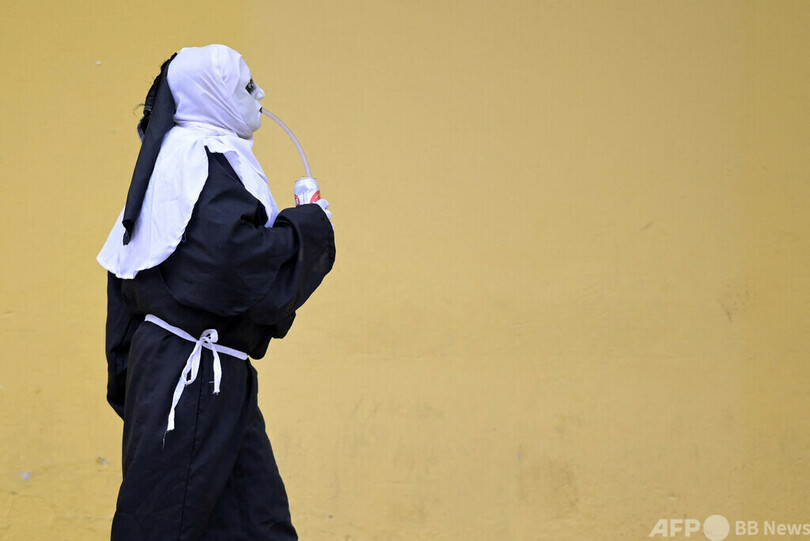【4月10日 AFP】ブラジル南東部ミナスジェライス(Minas Gerais)州ジャボチカトゥバス(Jaboticatubas)で9日、聖週間(Holy Week)の終わりを祝う伝統の仮面パーティー(Masquerade Party)が行われ、思い思いの仮面を着けた人たちの姿が見られた。