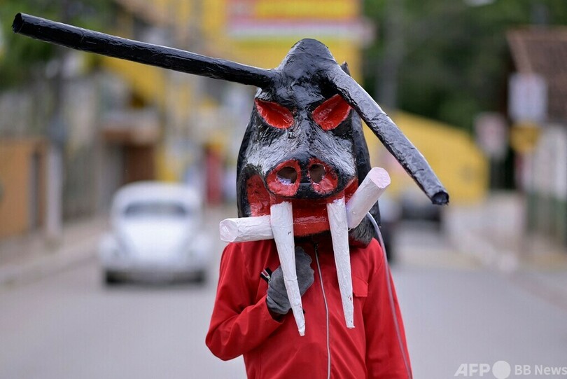 【4月10日 AFP】ブラジル南東部ミナスジェライス(Minas Gerais)州ジャボチカトゥバス(Jaboticatubas)で9日、聖週間(Holy Week)の終わりを祝う伝統の仮面パーティー(Masquerade Party)が行われ、思い思いの仮面を着けた人たちの姿が見られた。