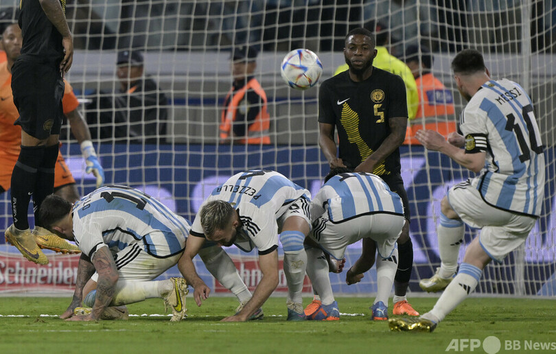 【今日の1枚】メッシのシュートを遮るな アルゼンチン