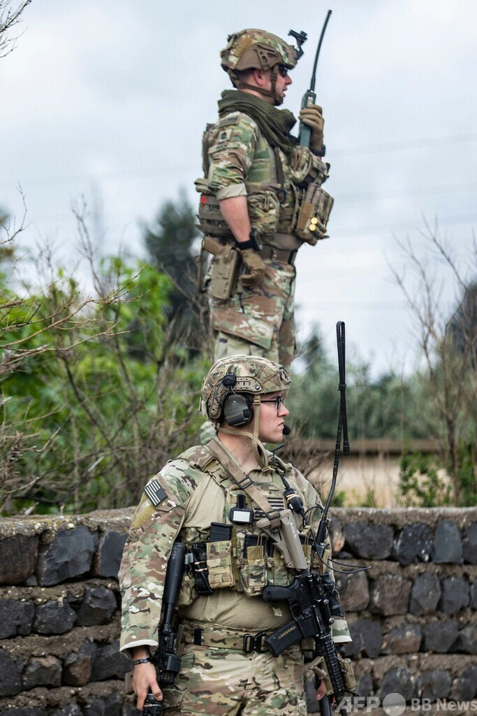 【4月14日 AFP】シリア北東部のトルコ国境に近いハサケ(Hasakeh)県ルメイラン(Rumaylan)で13日、米軍が巡回している様子が見られた。(c)AFP