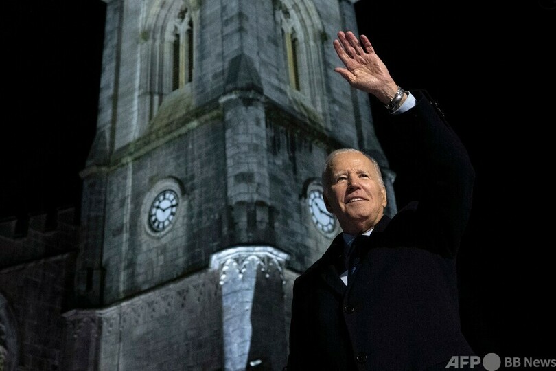 バイデン氏は訪問先のアイルランドを出発する際、「すでに算段はつけた。遠からず表明するつもりだが、今回のアイルランド訪問で何を成し遂げられるかに対する楽観がいっそう強まった」「私の計画は再出馬だと言ったはずだ」と記者団に語った。(c)AFP